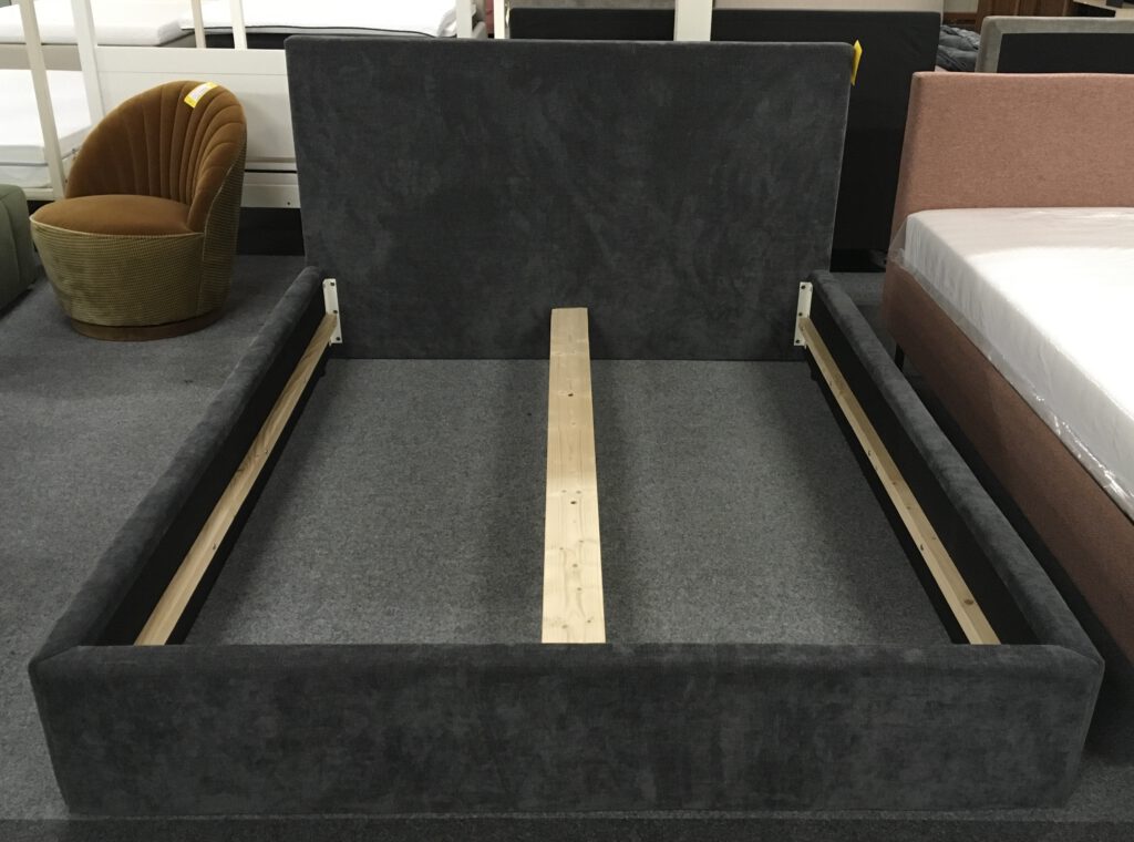 Bij dit bed is geen bodem en geen matras.